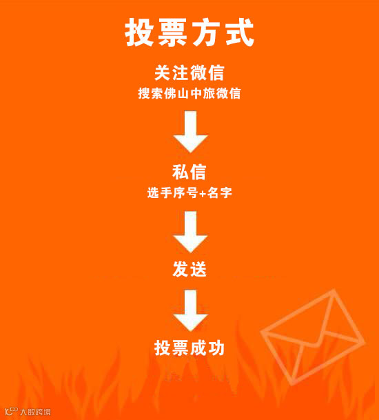 ①已成为佛山中旅的粉丝直接,【私信】选手序号+名字→【发送】→【投票成功】