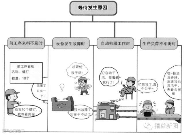 加工、搬运、检查过程中,随处可见等待的现象。比如:前工序来料不及时、设备发生故障时、生产负荷不平衡时等都是等待浪费发生的高危时段。