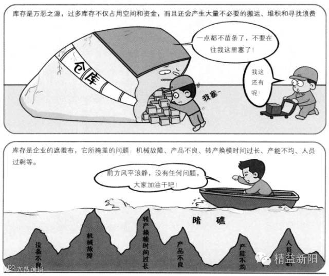 “库存是万恶之源”,过多的库存不仅占用空间和资金,产生大量不必要的搬运、堆积和寻找,而且还掩盖了企业内部的各种问题。如:生产周期不合理、设备故障太多、不良品太多等问题,如果有了充足的库存,出现问题时可以用库存先顶上,问题就可以慢慢解决甚至不用解决,最起码不是现在急需解决的问题。久而久之,就埋下了隐患的种子。
