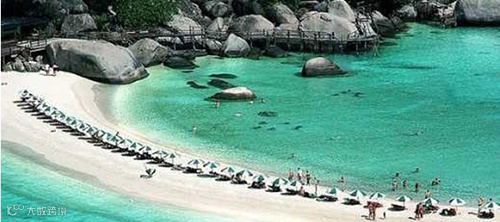 一片月牙般洁白的沙滩,环抱着被阳光晒得闪闪发光湛蓝的海水,随着波浪轻轻的晃动海面,海水被分出浅蓝至碧绿层次分明的色彩。这就是苏梅岛,海滩众多、水清沙白、景致迷人。苏梅岛最早的居民是150年前从海南来此定居的中国人,世代以种椰子为生。至今,椰树业依然是岛上重要的经济来源之一,每个月要向曼谷运送约200万只椰子。苏梅岛也因此赢得了“椰林海岛”的美名。作为世界级的海滨度假胜地,苏梅岛上的水上运动也是品种繁多。你可以潜水、潜泳、划独木舟、划水,甚至扬帆出海。在感慨苏梅岛海滩的美丽之余,也不要忘了去拜访葱郁的椰树园、沉静的小渔村和美丽的瀑布。