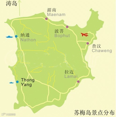 查汶海滩(Cha Weng Beach):这里是苏梅岛上最长、热闹和有名的海滩了,柔软的细沙和大海互相印衬着。随处可见着丰富的海上娱乐设施,各种各样的活动充满着冒险和刺激,在这里你会度过一个非常愉快的假期,每到夜晚这里也就成为了游客的集散地和夜生活的中心。