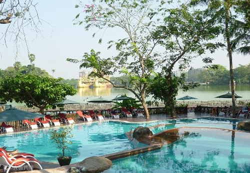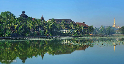 Kandawgyi Palace Hotel位于风景秀丽的皇家湖畔,皇家湖在仰光大金塔东部,是英国殖民时代挖建的人工湖,整个湖泊周长约5公里,被包围在皇家自然公园内。