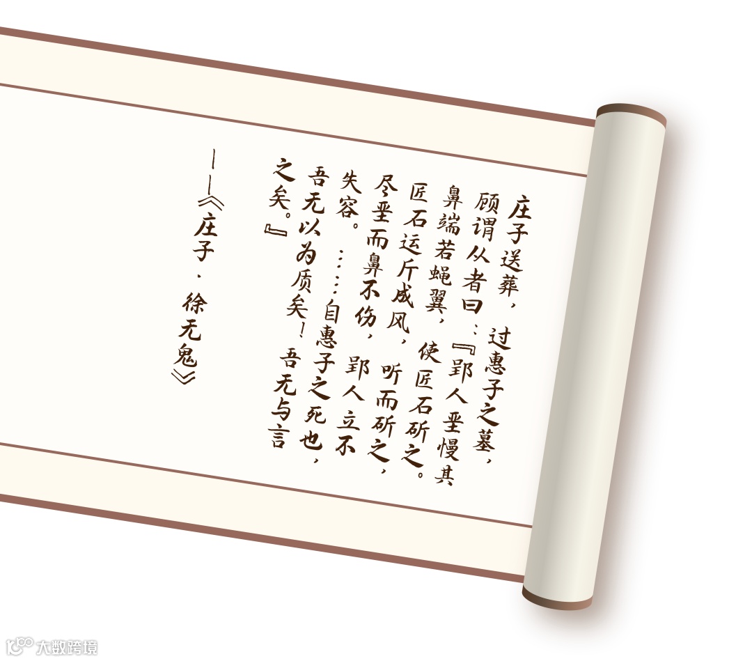 庄子为人淡泊清高,追求自由,这份旷达的心境也使他“独与天地精神往来,而不敖倪于万物;不谴是非,以与世俗处。”庄子与惠子初相识时,互相欣赏对方的才华,但深入了解后却发现彼此的观念天差地别:庄子推崇“无用”之学,视名利如敝屣,而惠子则主张建立积极入世的“有用”之学,汲汲于富贵;庄子认为“人故无情”,而惠子却直言无情不足“谓之人”;两人就算“同游于濠梁之上”,都会因是否了解“鱼之乐”而展开一番争辩……虽然庄子与惠子在政治观点上截然相反,在学术观念上也截然对立,但正是通过一次又一次的争辩与探讨,使他们不断碰撞出思维与智慧的火花,相互启迪,从而深化了彼此的精神境界;懂得求同存异,包容彼此的差异,最终成为惺惺相惜、相爱相杀的“最佳损友”。惠子去世时,庄子不禁发出“吾无与言之矣”的慨叹,重回“独与天地精神往来”的孤独状态。刘向在《说苑·说丛》中写道:“惠子卒而庄深瞑不言,见世莫可与语也。”此后庄子未曾再与他人争辩,因为能和他同频共鸣的知己已远去。他们是对手,更是除了自己之外最“知己”的挚友。