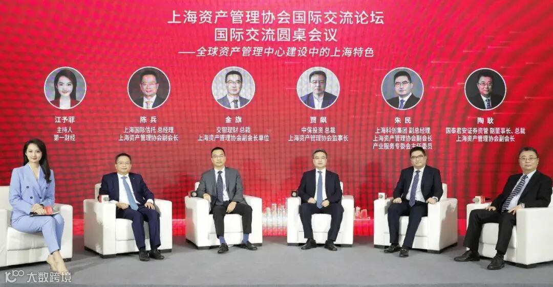 圆桌论坛环节,由第一财经主持人江予菲主持,上海资产管理协会主要领导成员集体亮相,共话“全球资产管理中心建设中的上海特色”主题,分为国际交流与产业支持两个专场。会长李文、监事长贾飙,副会长以及副会长单位代表:张守川、金旗、罗水权、陶耿、朱民、陈兵、张弛,展开有独到见解的互动讨论。