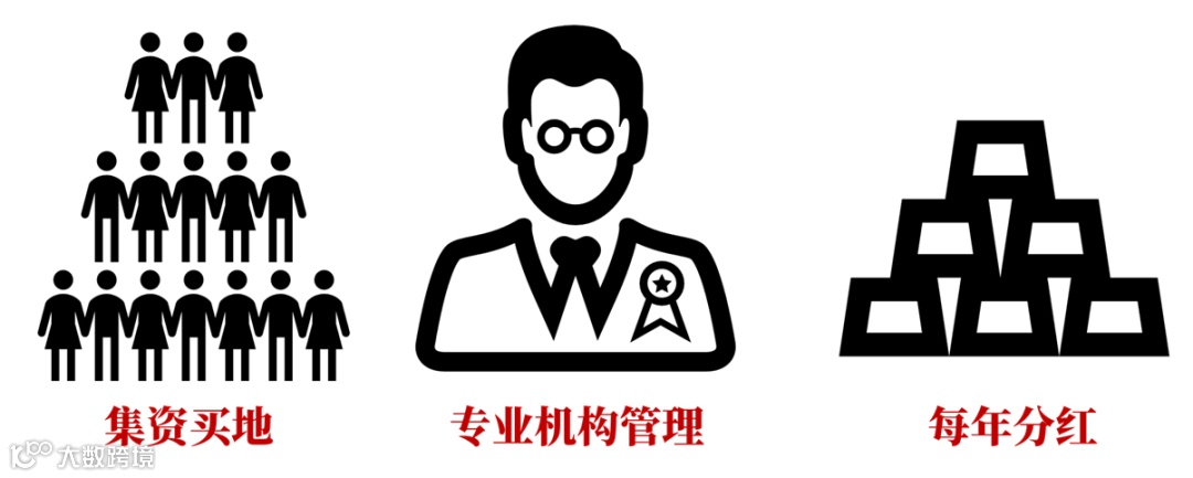 这时,具有商业头脑的小西号召大家筹集资金买地,然后聘请专业团队管理,将土地出租,赚取的租金大家分。这样的好处有很多。首先,让原本无法投资土地的普通村民也能有机会享受土地出租的红利;第二,有专业团队操盘,不用亲自管理,支付管理费,大概率能拿到分红的钱。