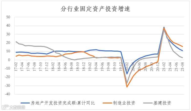 ⑴地产投资。地产开发资金的一多半来自销售回款。受地产调控政策持续加码,按揭贷款收紧,需求端市场观望情绪加重等因素影响,地产销售目前已进入下行周期,从而通过销售回款对地产投资产生负面影响。同时房开贷的持续收紧也加大了地产投资面临的压力。8月土拍新规出台以来,二次集中供地的城市土拍热度均不高,溢价率较首轮有明显下降,多宗地块底价成交,流拍、撤牌率上升。房企拿地积极性的显著降温,也会通过土地购置费和新开工令地产投资承压。