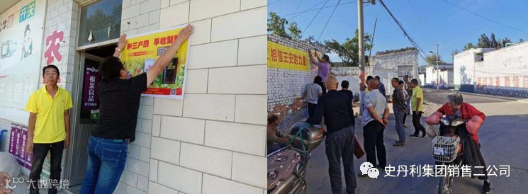 准备工作要做足,蒙西销售公司总经理吴淑垒带领销售五区和六区团队提前进村张贴海报,进行宣传,为本次会议提前造势。