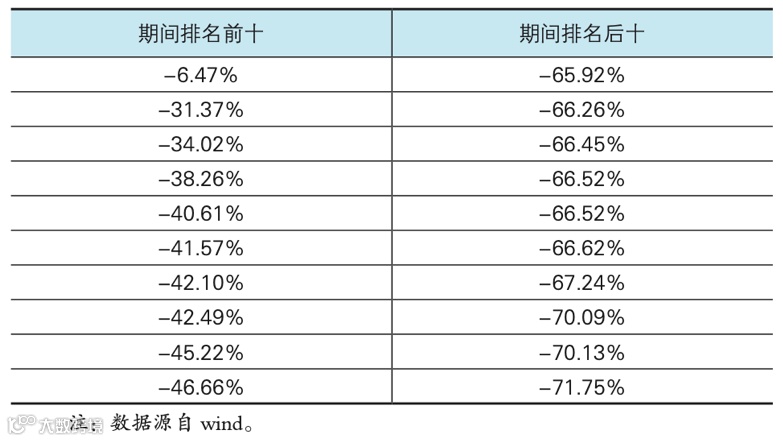机构投资者也很难做对择时。在上证指数从5178点跌到3373点期间,我们从市场上几千只基金中选取了(剔除成立未满3个月、以打新股为主策略、分级基金等)表现最好的前十只基金,可以看出,鲜有逃顶的基金,排名后十位的基金净值甚至腰斩,回撤幅度大于指数的回撤。