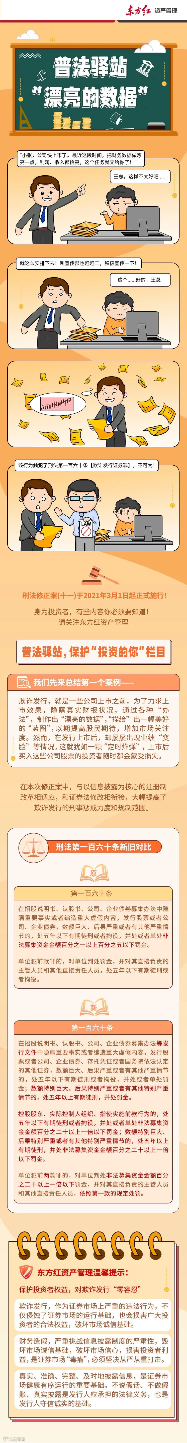 对于投资者来说,法律是最有力的保护。2020年5月28日,十三届全国人大三次会议表决通过了《中华人民共和国民法典》,自2021年1月1日起施行;《刑法修正案(十一)》于今年3月1日正式施行;2021年3月1日新《证券法》实施一周年,在各项法律法规更加完善的基础上,投资者权益的保护得到了进一步的加强。