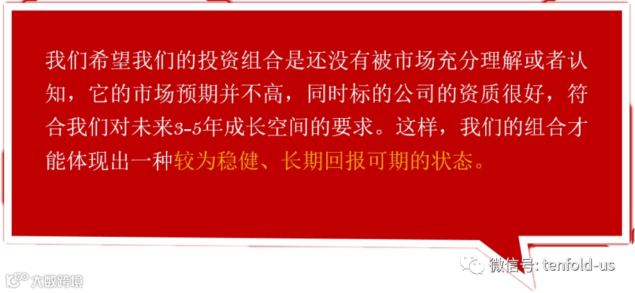 他的投资理念,非常纯粹:以5-10年为维度,精选优质的个股,以合理的价格买入并长期持有,做大概率的投资。