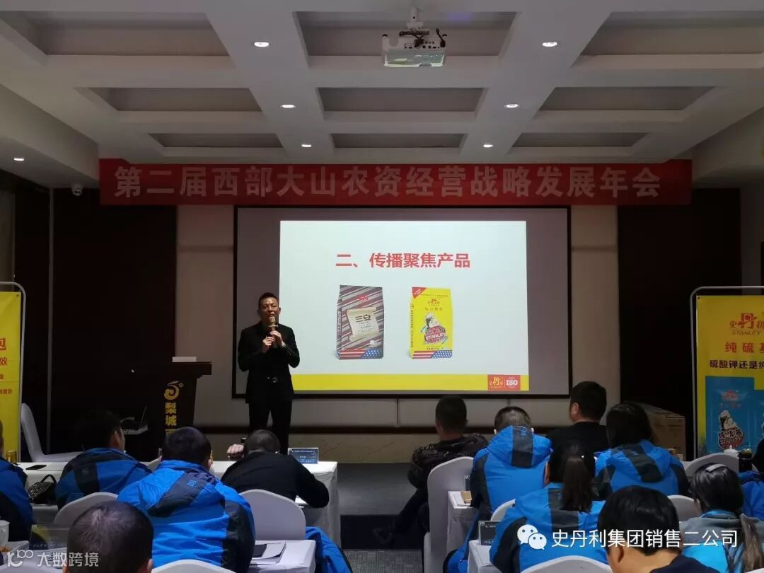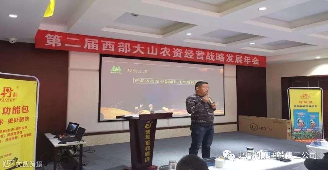 西部大山农业开发有限公司,位于新疆巴州库尔勒市和顺农资市场,是一家集肥料、农药、种子、农业工具、农服于一体的综合性农业公司,2018年6月与史丹利牵手合作,经过一年多的耕耘,2019年度销量已突破3000吨,为更好地完成2020年度销售任务,2019年12月22日,史丹利携手西部大山农业开发有限公司在库尔勒市召开“第二届西部大山农资经营战略发展年会”。