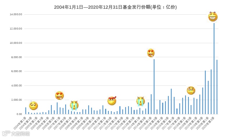过往的经历和数据给了人们很多值得学习和反思的素材。2013年和2014年,牛市尚未启动,市场比较平淡,参与的投资者非常少。2015年上半年,市场行情火爆,大量投资者高位进场,然后在股灾后绝望离场。很多投资者都认为,应当在大牛市中赚钱,于是他们不断等待,等到意识到大牛市来临,才兴奋地把大笔资金投入权益类产品,但其实此时已经是牛市中后期了。