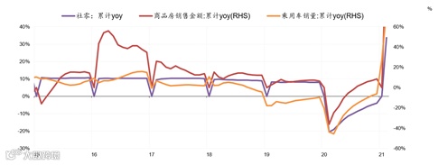 房地产销售20年下半年月均增速9%以上,21年Q1整体销售也非常强劲,保持了非常强的韧性。预期伴随调控政策的落地,21年Q3开始地产销售、投资增速都会放缓。但由于一城一策也不至于出现断崖式下滑,会保持在合理的区间内,真正实现稳预期、稳地价、稳房价。