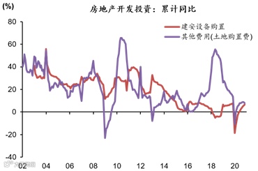 2020年基建投资一直是让市场比较失望的,可能与政府发债后未及时投资有一定关系。基建由广义财政和专项债决定,21年专项债规模不及20年。20年5月份-12月份的基建增速在7%左右,21年这一增速会降低到4-5%,但基于目前基建补短板的定调,也不太可能回到2018-2019年低增长的状态。