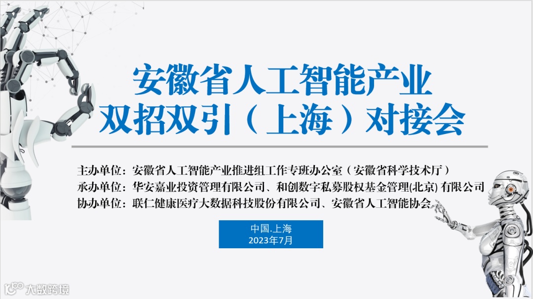 此次对接会由安徽省人工智能产业推进组工作专班办公室(安徽省科学技术厅)主办,华安嘉业投资管理有限公司、和创数字私募股权基金管理(北京) 有限公司承办,联仁健康医疗大数据科技股份有限公司、安徽省人工智能协会协办。
