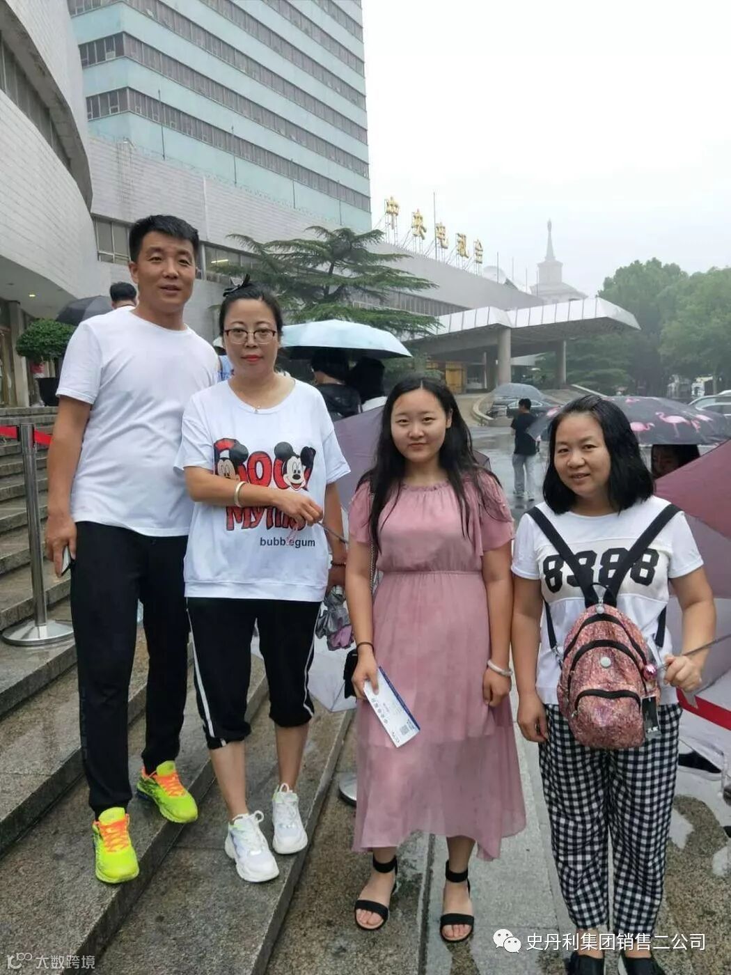 ▲内蒙古包头经销商池美清及其家属公司人员在中央电视台前合影