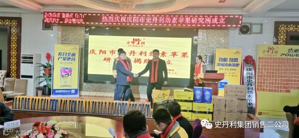 为了更好的服务庆阳市果农,扩大影响力,增加史丹利劲素在庆阳市场销量。在销售二公司张宗礼总监和西北销售公司张淸武总经理的支持下,通过沟通庆阳市富霖农业成立庆阳市史丹利劲素苹果研究所。
