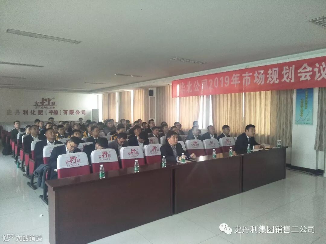 为了2019年史丹利华北销售公司销售工作顺利展开,对2019年工作做出更具体细致,切合实际的战略部署,针对性区域规划,促进销售人员相互借鉴、相互学习、共同进步,2019年史丹利华北销售公司市场营销启动会议于2018年11月14日在史丹利(平原)公司隆重举行。史丹利农业集团总监 张宗礼、华北销售公司总经理 季金磊 及全体华北公司销售精英等66余人参加了会议。