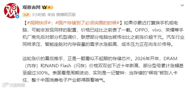 咱们这边,国产存储厂也借着这波涨价潮,加速完成替代。