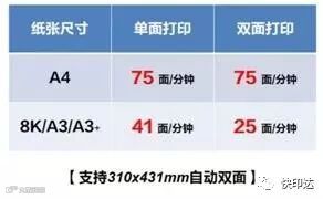 具有高的生产力,支持自动A3+双面打印且保证速度稳定。A4黑彩同速双面打印可达100页/分钟,彩色可达75页/分钟。更可通过多机并联,达到数百张/分钟。
