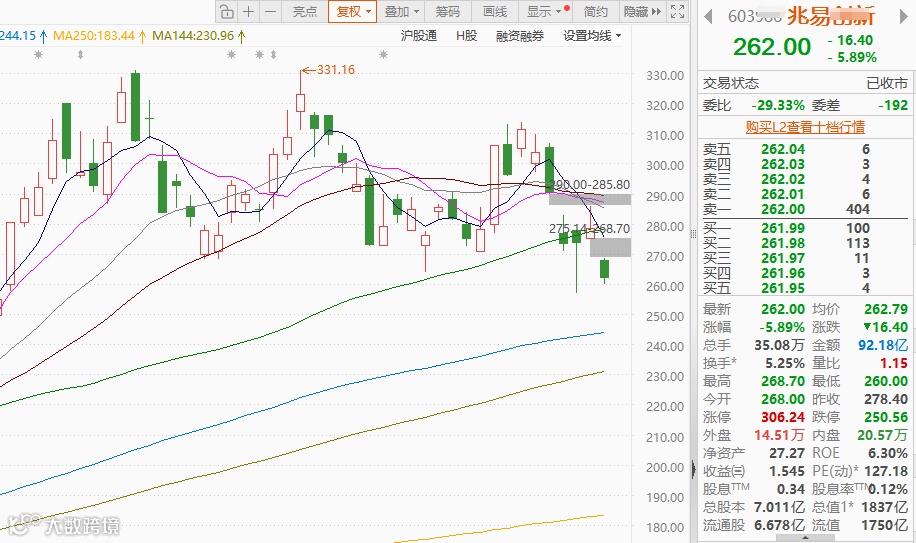 美光、三星、SK海力士等存储巨头普遍大跌。A股存储板块跌2.7%,咱们持续跟踪的龙头公司兆易CX今天暴跌近6%,不仅把昨天反弹成功吞噬了,而且距离前低一步之遥。