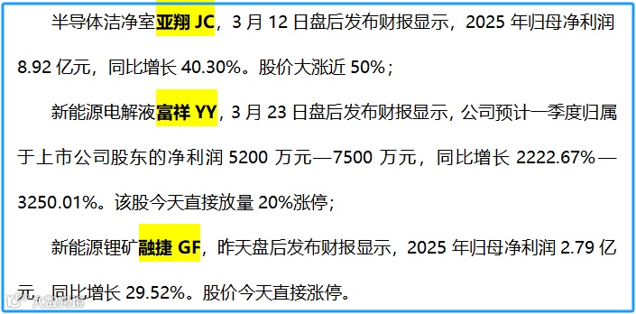 热点方面,周二《注意!新的主线已定!抄底就选它!!!》一文谈到的三家业绩“牛”,整体表现依然突出。