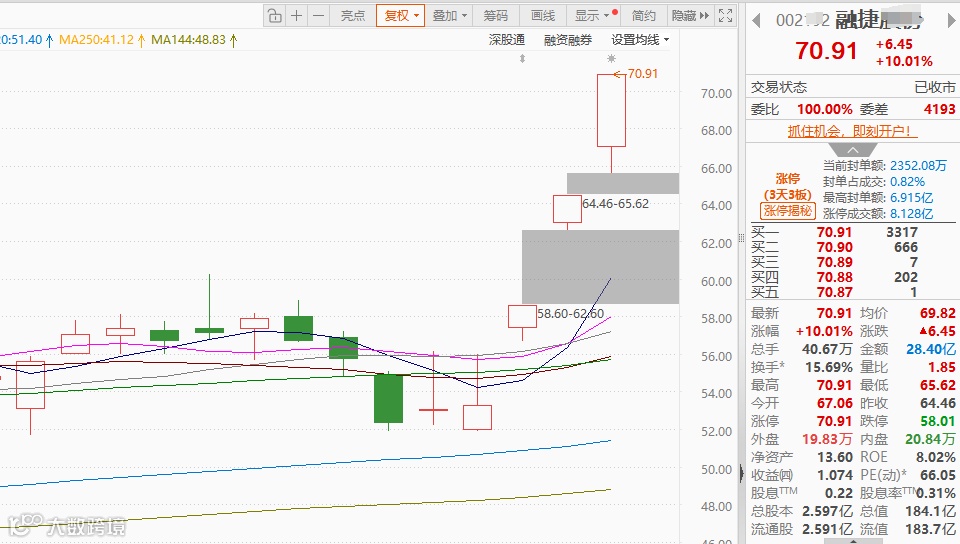 人气龙头融捷GF,提示后已走出两连板,股价刷新本轮反弹以来新高,明天冲高可考虑“取关”;