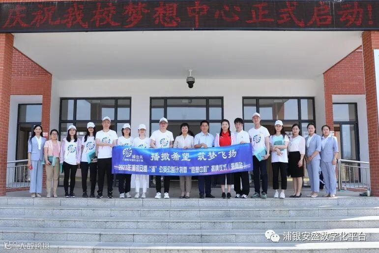 致辞结束后,浦银安盛基金督察长喻庆及“浦”公英们作为捐助方代表,与杨艳丽校长一起为梦想中心揭牌,并与夏炜林副局长及牛晓副秘书长合影留念。