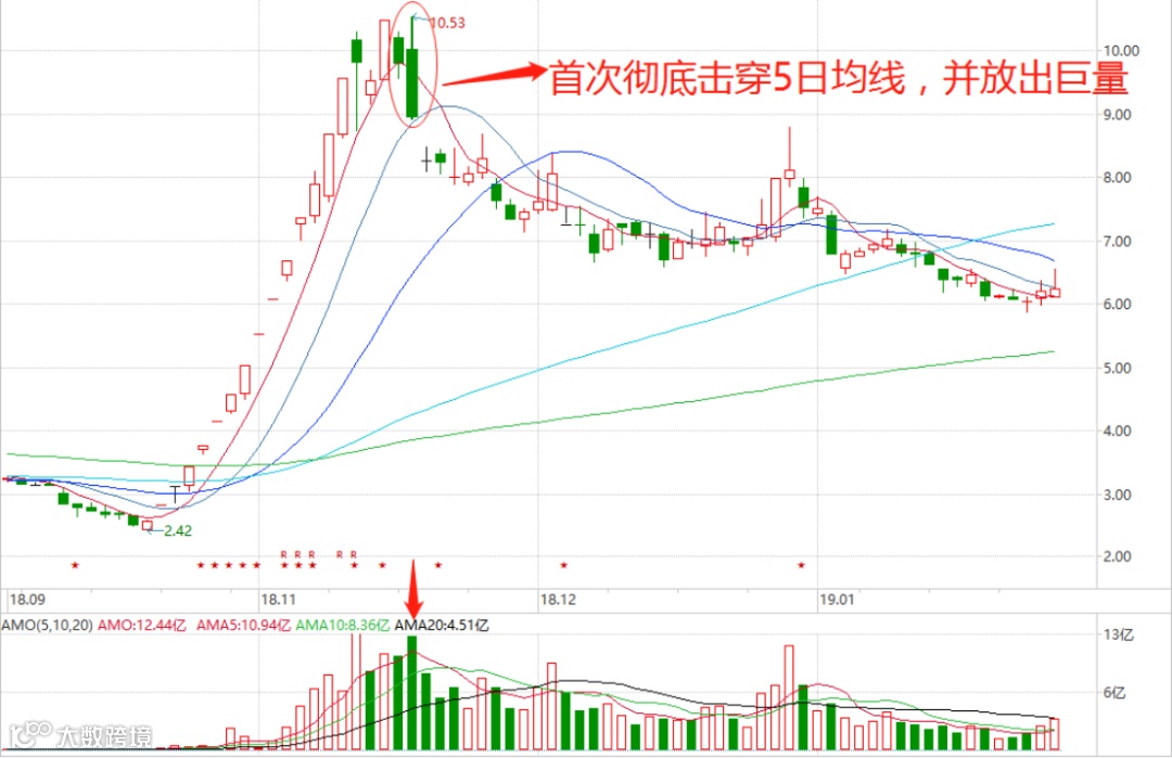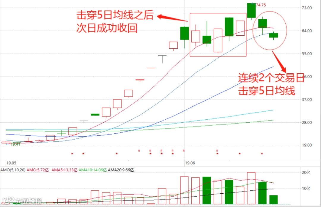 5日均线是龙头股的生命线。龙头股沿着5日均线上涨是其表现最为强势的阶段,因此,龙头股彻底击穿5日均线往往意味着其短趋势终结,应该坚决卖出。以下结合具体案例进行分析。