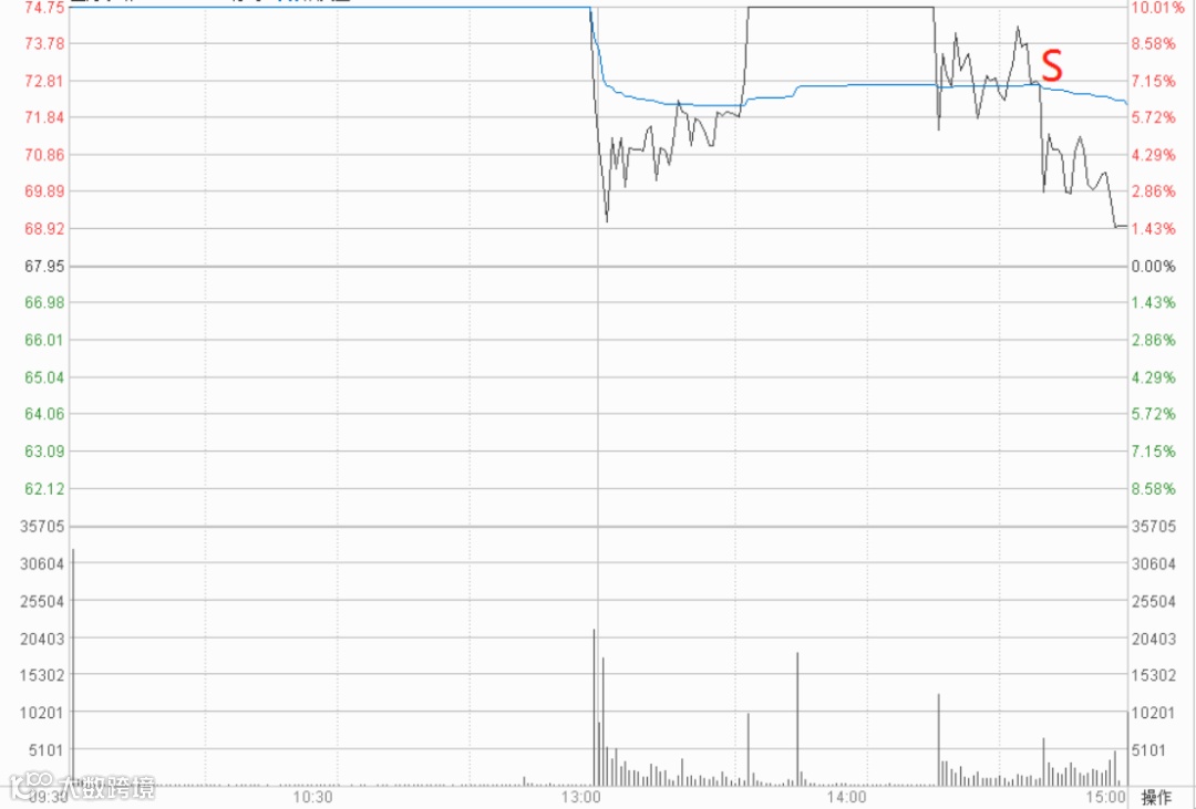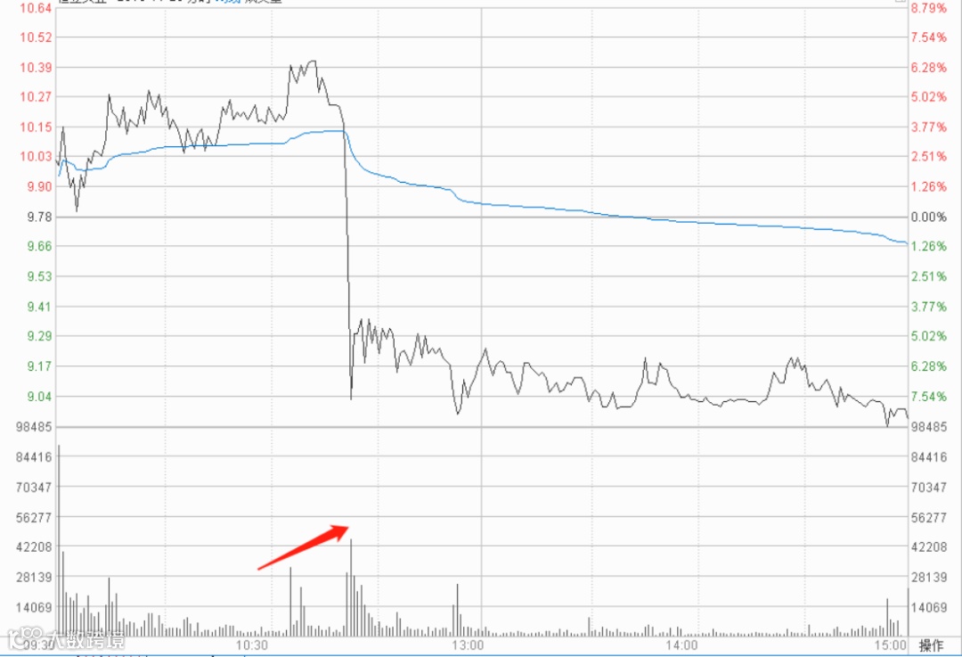 其中第1根K线微微击穿5日均线,继续持股问题并不大,但第2根K线直接彻底击穿5日均线,并放出历史天量,必须坚定清仓出局。我们结合当天的分时图具体来看,该股早盘一度小幅放量上涨逾6%,但随后急转直下,连续放量出货,瞬时下跌逾13%,这是极为典型的出货手法。因此,遇到这种情况必须及时出局,避免成为接盘侠。