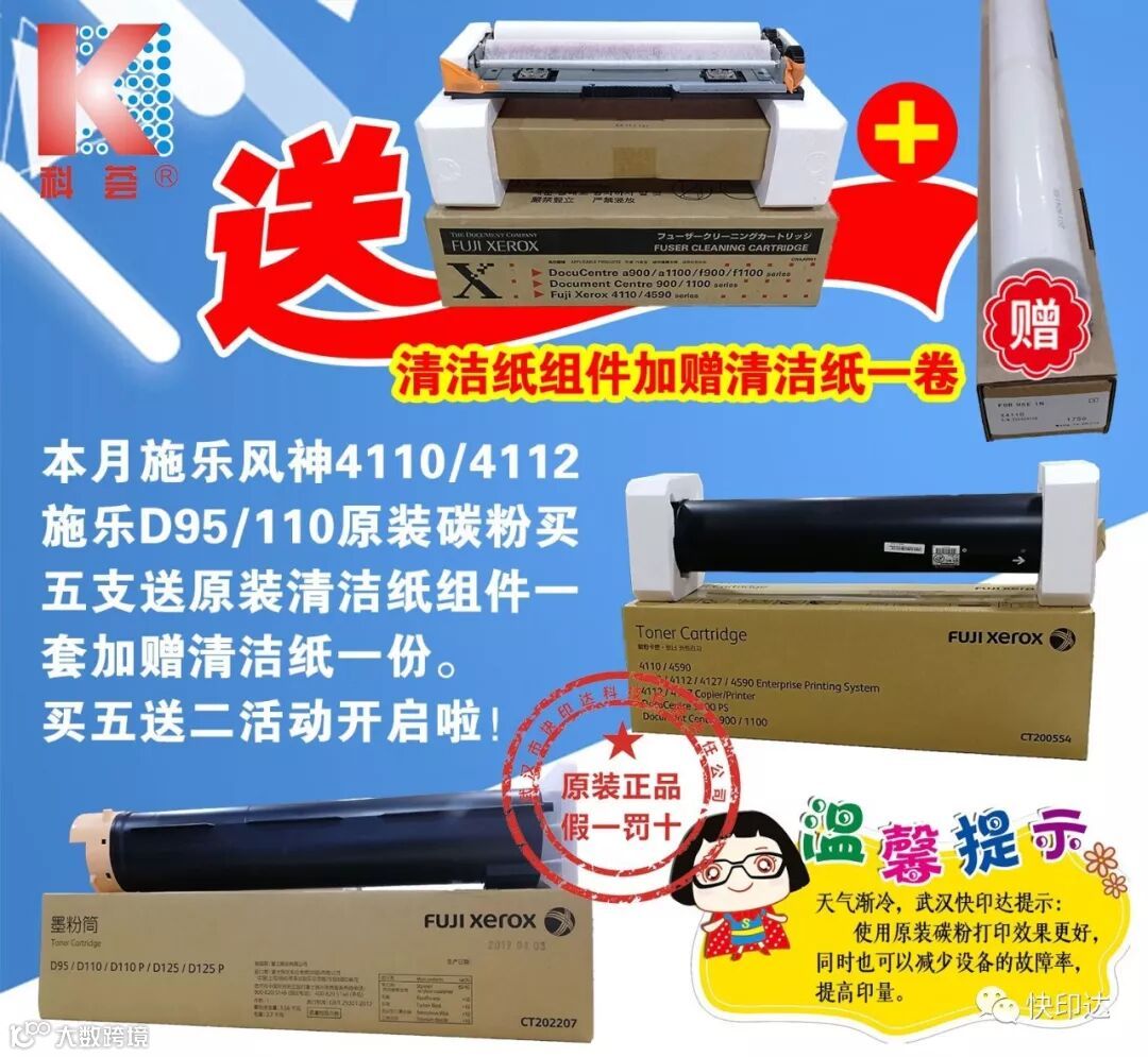 冬天要来临了,为了设备的定影效果请一定要使用原装碳粉哟!为了方便客户本月施乐风神4110/4112和施乐D95/110原装碳粉买五支送施乐原装清洁纸组件(加赠备份清洁纸一卷),都是必备品,这样可以保证您的设备安全过冬啦!