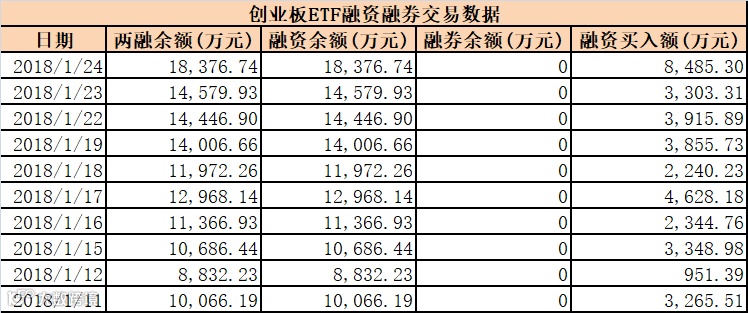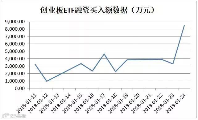 交易所数据显示,创业板ETF1月24日融资买入额由上一个交易日的3303.31万元激增至8435.3万元,增幅高达1.56倍。