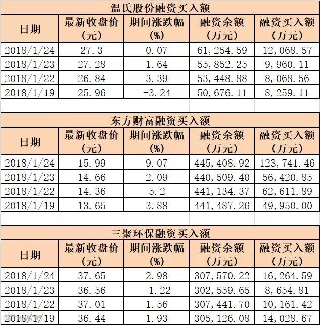 不仅创业板ETF融资买入额翻倍,东方财富、温氏股份、三聚环保等几个最大的创业板权重股最近几个工作日融资买入额也开始成倍增长,东方财富在1月24日融资买入额相比上一个交易日增长了119%,三聚环保融资买入额增幅也超过1倍。