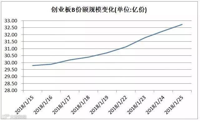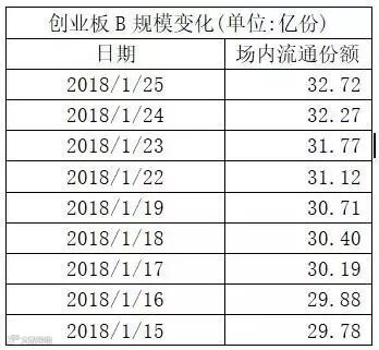 截至1月25日为止,场上规模最大的易方达创业板ETF在最近10个交易日场内流通份额由29.33亿份增长至33.71亿份,份额增幅为14%。博取杠杆收益的创业板B份额也由1月15日的29.78亿份增长至32.72份,增幅9.87%。