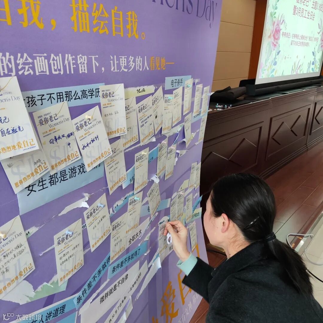 主题互动环节,大家勇敢撕下“偏见”标签,贴上自我赞美夸夸卡。不被他人期待绑架,不被社会定义束缚,此刻,每一位女性尽情展现独属于自己的自信与光彩。本场活动将“与自我和解”的温柔,悄悄藏进活动的每一处细节。