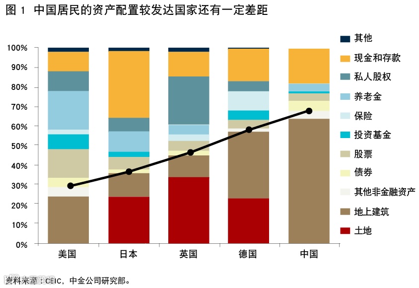 从数据看,经过40年的积累,中国居民总资产已达到552万亿元人民币,过去近20年年化增速达到17%,但与主要发达国家相比,我国居民金融资产的配置比例还有较大空间。2004年以来,居民资产中不动产、存款、理财和信托的比例出现台阶式下移,基金、股票等风险资产的配置比例逐步提高。着眼未来,中国居民金融资产的配置比例会加速提升。居民财富的配置需求,越来越多元化和立体化,随着资管新规的实施、理财产品净值化转型,居民对净值型产品的认知更加完善,居民资产配置中有望加大对相对高风险、高收益的权益资产的配置,将为资本市场带来更多长期资金。