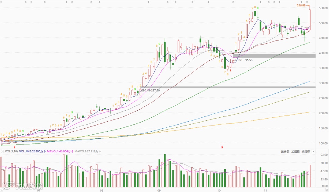 这家公司就是——GY富联,代称“工业”。预计随着大盘跌势放缓,以及AI行业的快速发展,GY富联凭借着谷歌、英伟达双重合作伙伴的优势,有望重回原有的反弹结构之中。