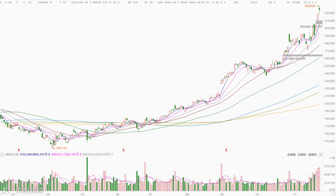 这一逻辑,也直接反应在今天的盘面中。光模块龙头中际XC今天放量大涨13%,股价刷新历史新高。