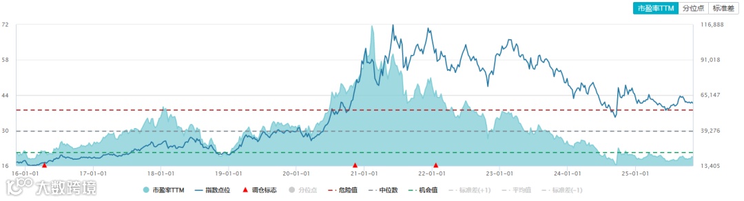 这里以白酒行业为例,目前的估值水平大致在19.55倍,历史上平均估值水平为31.2倍,中位数为29.67倍。