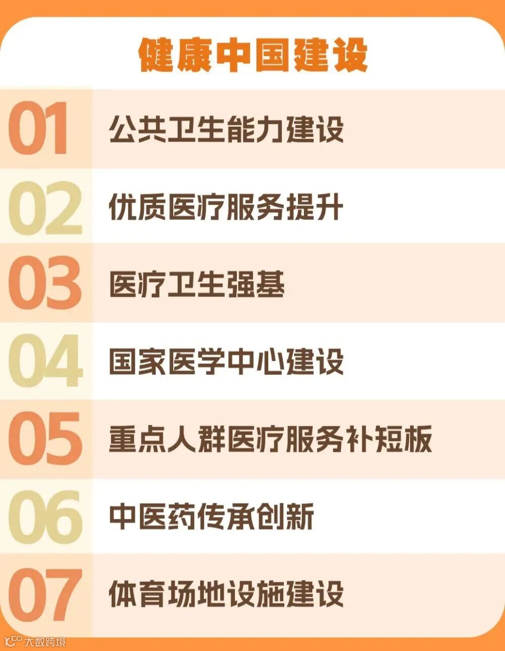 健康中国建设:从 “治病为主” 转向 “预防 + 治疗 + 康复 + 健康管理” 全链条。
