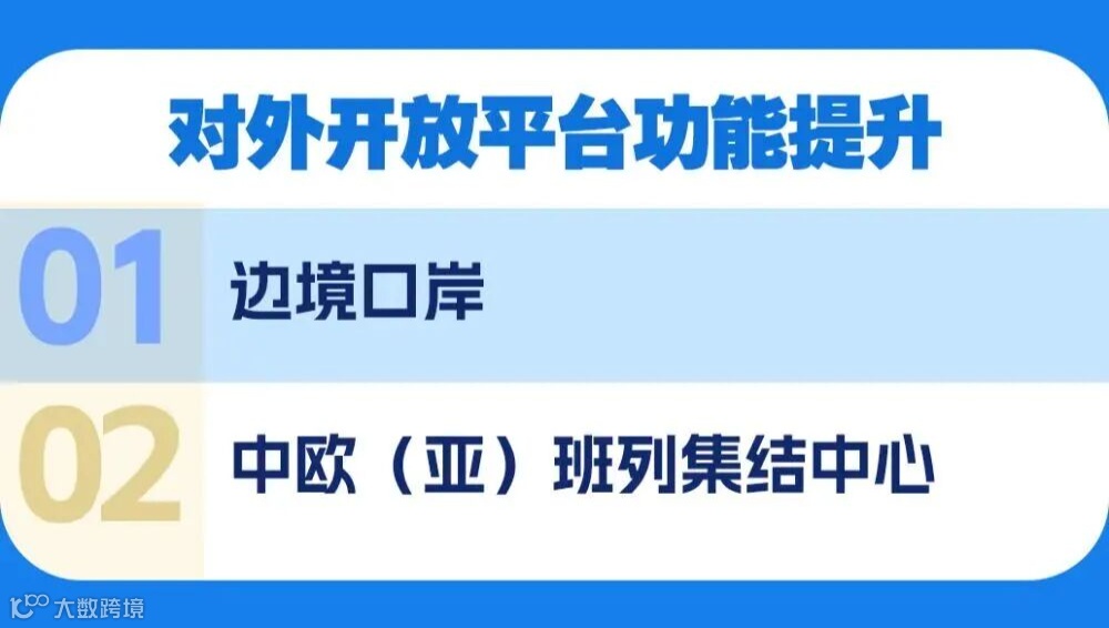 例如:自贸试验区、自贸港提升功能、口岸现代化、通关便利化、跨境物流通道、国际班列(中欧班列等)、跨境电商、保税物流中心,服务 “一带一路” 互联互通。