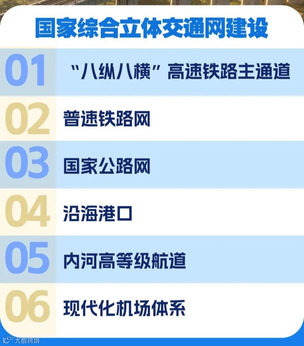 国家综合立体交通网建设:将全国的高铁、高速、机场、港口等连成一张 “超级大网”。