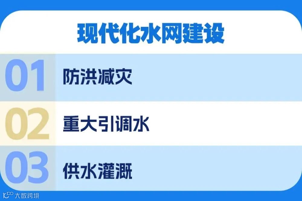 现代化水网建设:把全国的江河、水库、灌区、调水工程连成一张 “大水网”。