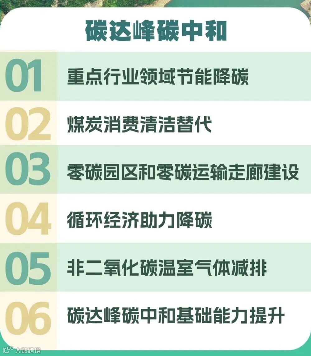 碳达峰碳中和:控制碳排放、发展清洁能源、推动产业和能源绿色转型。