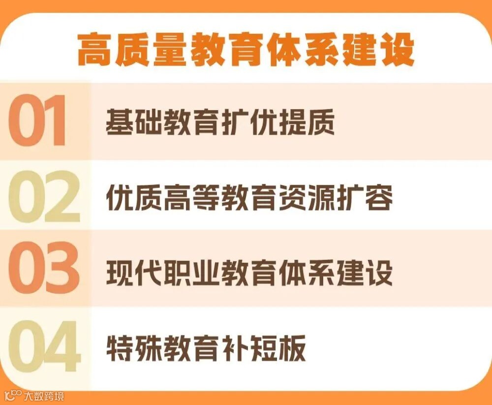 高质量教育体系建设:从幼儿园到大学、从普通教育到职业教育,全面提质、更公平。