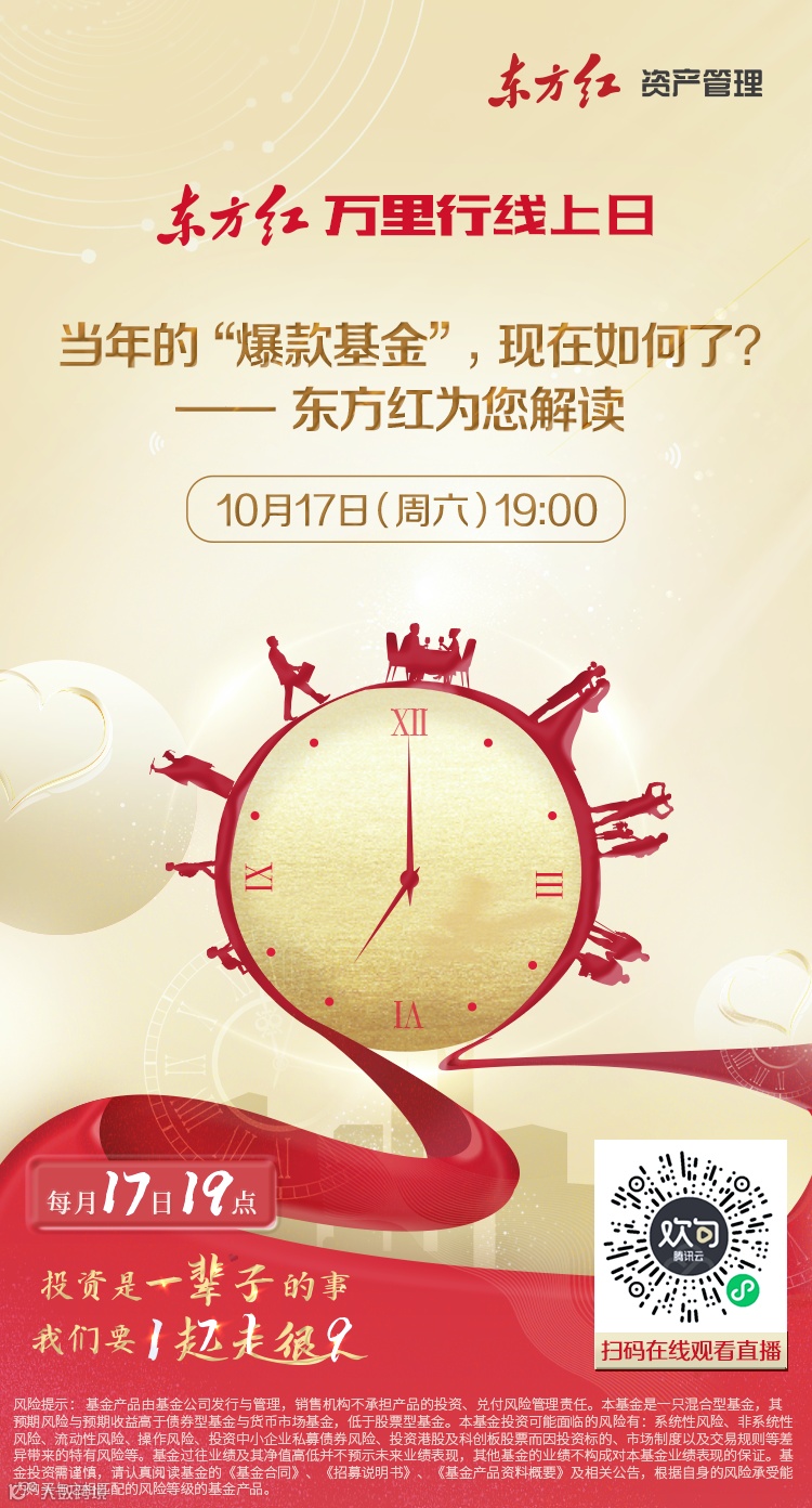 为了陪伴投资者一起穿越市场周期,更好地进行投资理念的交流分享,我们将每月17日19点设为“东方红线上万里行日”,通过线上直播的方式与您分享价值投资的相关理念。我们选择这一时间的寓意在于,我们希望投资是一辈子的事,我们要一起(17)走很久(9)。