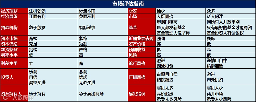 定量指标有不少,定性的霍华德·马克斯提供了以下市场评估指南,“定量+定性”即“科学+艺术”来搞清楚我们大致正处于什么位置。