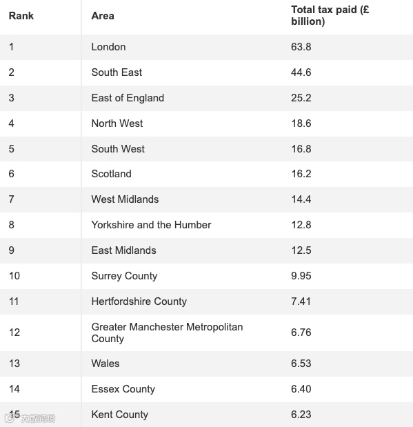 英国所得税地区差异显著:伦敦部分行政区税收超大型城市总和
