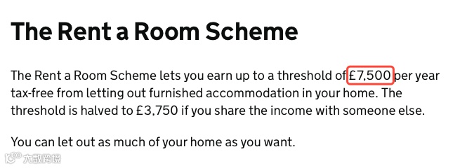 “出租房间计划”允许房东每年从出租主要住所,且带家具的房间中获得最多£7,500免税收入。