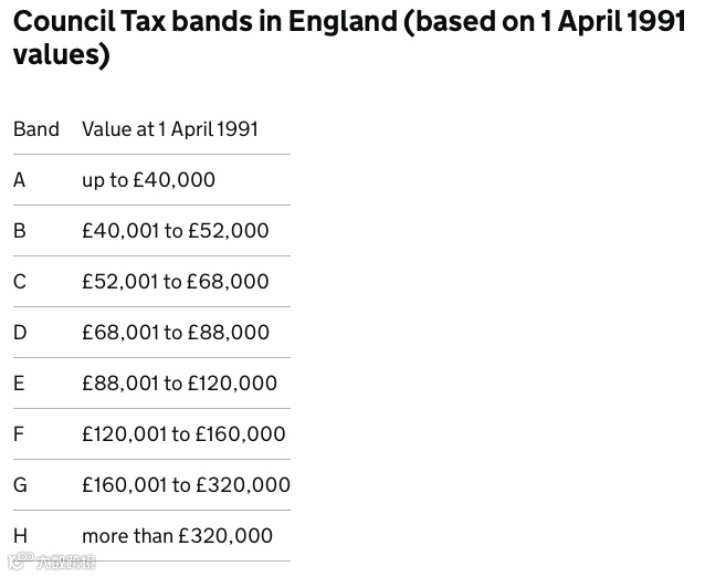 首先,您的房屋会被根据其市场价值划分到一个特定的估值档次。每个档次对应不同的税额,档次分为A至H共8个等级。档次A代表价值最低的房屋,H代表价值最高的房屋。